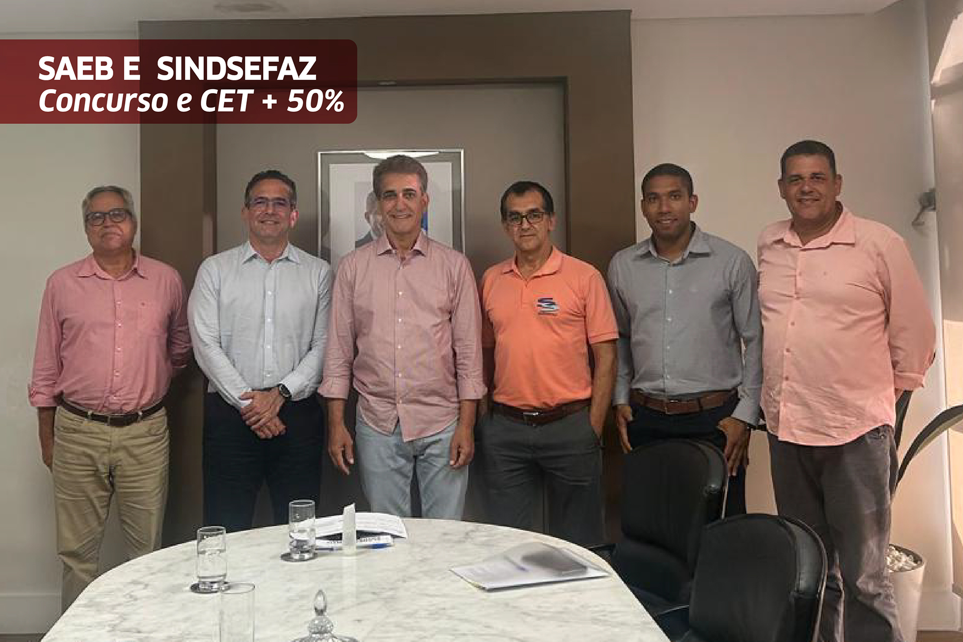 Na tarde desta quinta (04), dirigentes do Sindsefaz se reuniram com o secretário da Administração do Estado da Bahia, Rodrigo Pimentel, para tratar de duas pautas fundamentais para as carreiras fazendárias: o concurso público da Sefaz e o cumprimento do MS coletivo referente à CET + 50% para atividades internas. O encontro, na Saeb, integra a agenda de articulação permanente do Sindicato com o governo para destravar temas urgentes e que impactam diretamente o funcionamento da Secretaria da Fazenda e a vida funcional dos servidores.