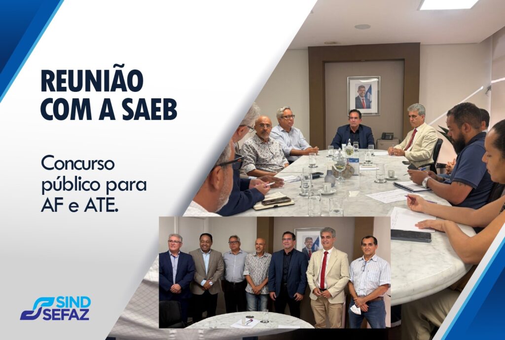 Diretores do Sindsefaz se reuniram com o secretário de Administração do Estado da Bahia, Rodrigo Pimentel, para tratar do concurso público já anunciado para os cargos de Auditor Fiscal e Agente de Tributos Estaduais da Secretaria da Fazenda (Sefaz-BA). O encontro contou também com a presença do superintendente de Recursos Humanos da Saeb, Adriano Tambone e do deputado estadual Robinson Almeida (PT).