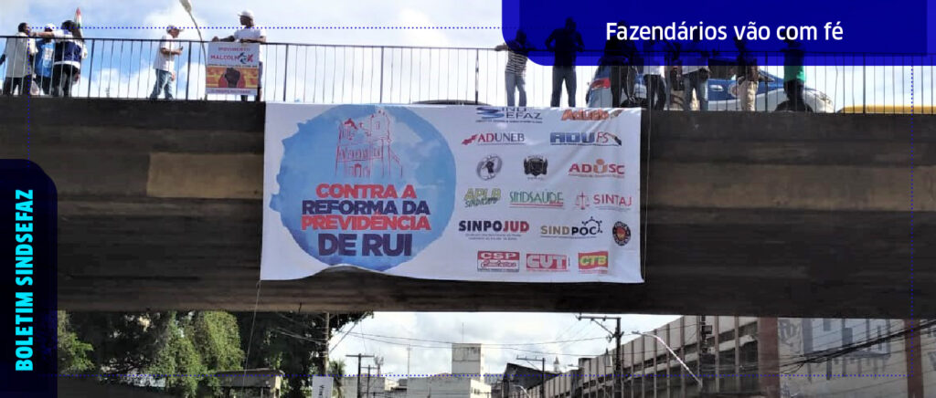 Os fazendários, mais uma vez, aproveitaram o cortejo ao Bonfim para levar às ruas o seu protesto contra as péssimas relações de trabalho mantidas pelo governo baiano. Dessa vez a reclamação é contra a PEC que promove mudanças na Previdência dos servidores estaduais, que penaliza mais ainda uma categoria que já sofre com grandes perdas salariais.