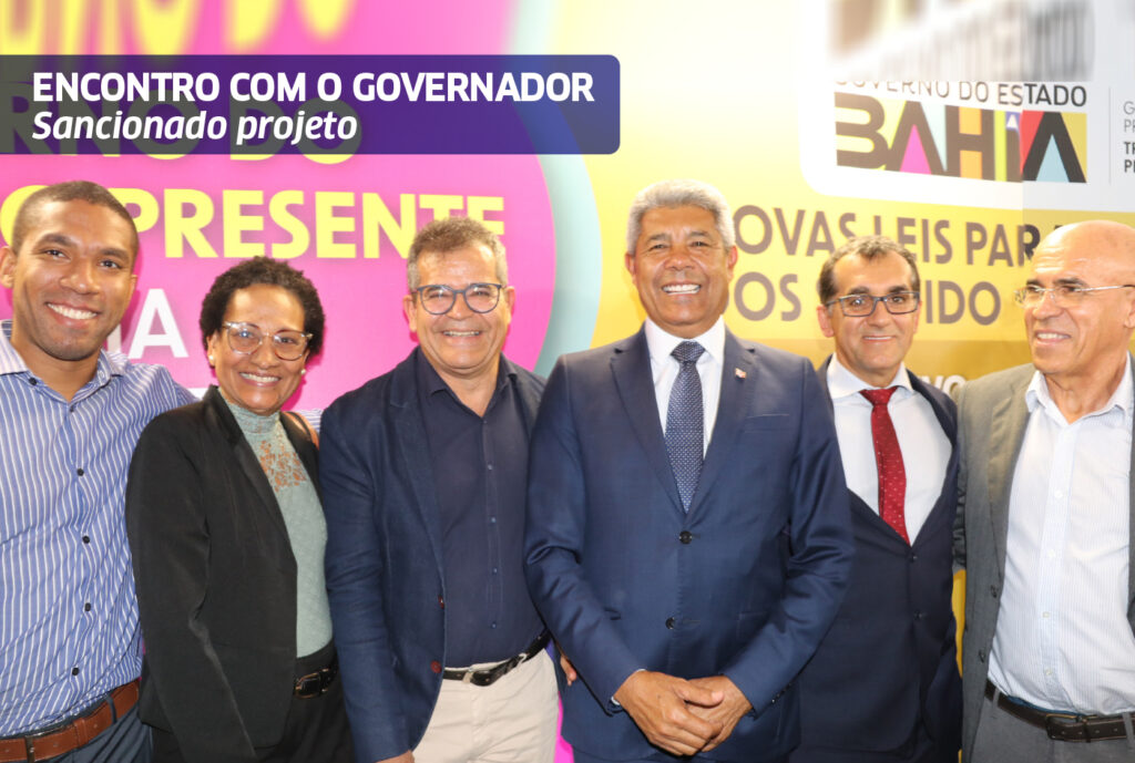 O governador Jerônimo sancionou nesta segunda (08) o projeto de lei que beneficia diversas carreiras do Executivo, entre os quais os técnicos administrativos e os colegas do fisco, com alterações na GDF e na GF. Dirigentes do Sindsefaz – Joaquim Amaral, Davi Marcos, Iara Edilene, Evelin Melo e Genildo Viana – participaram da atividade.