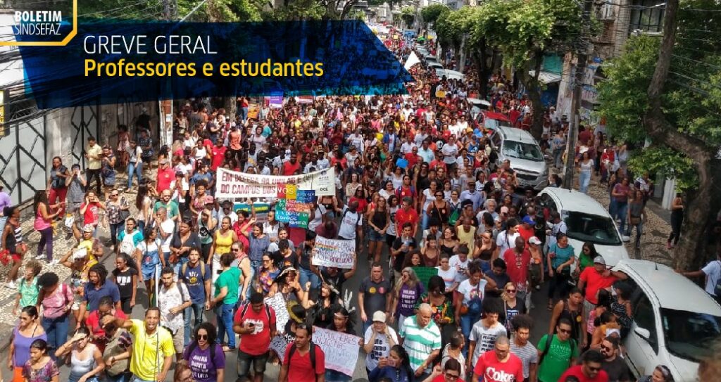 A greve geral que parou a educação no Brasil acontece após o Ministério da Educação anunciar, em 30 de abril, um corte linear de 30% no orçamento das universidades. Em alguns casos o corte é maior, como na UFBA, cuja tesoura ideológica do MEC retirou 43% dos recursos. O objetivo do MEC foi chantagear os reitores, para que eles transformem as instituições federais de ensino em paróquias do pensamento atrasado, antiquado e conservador do governo Bolsonaro.